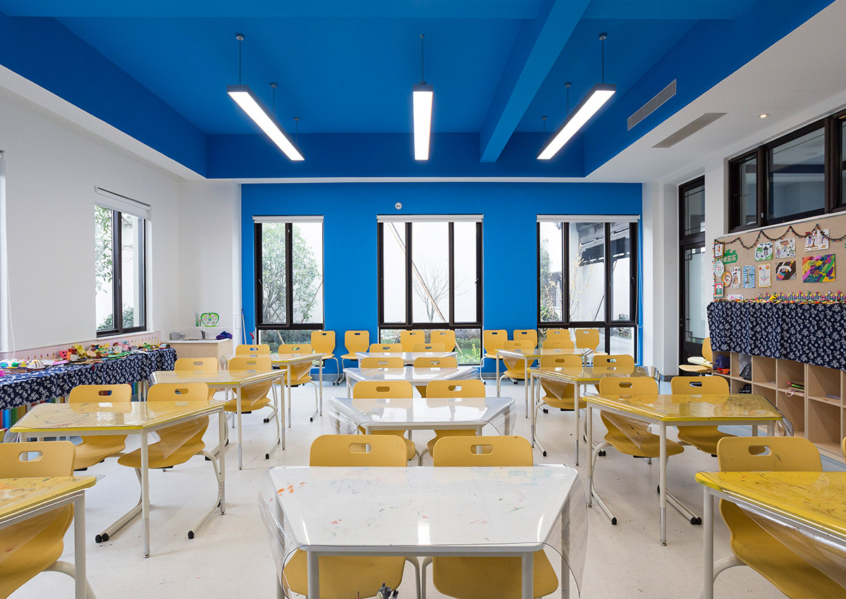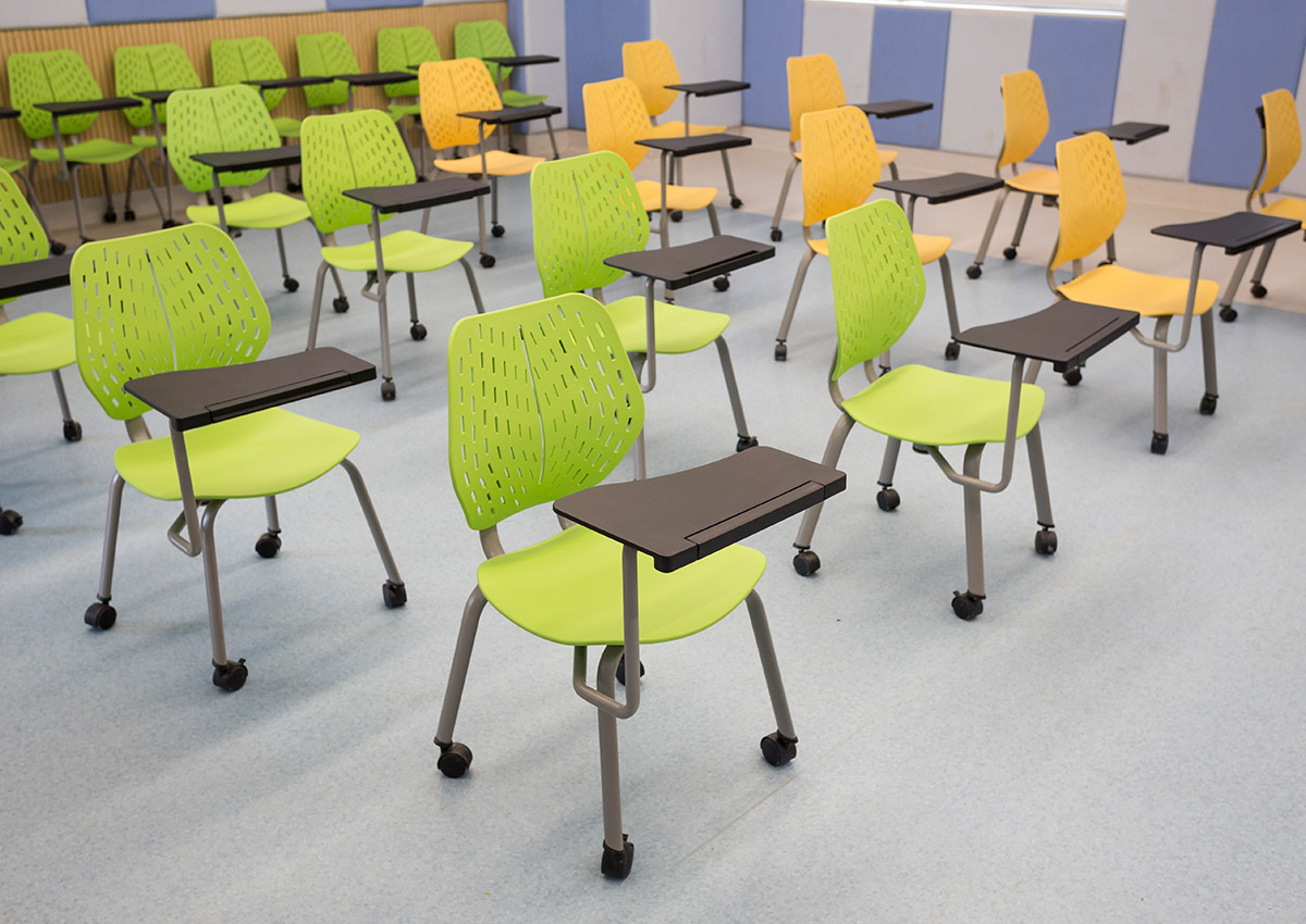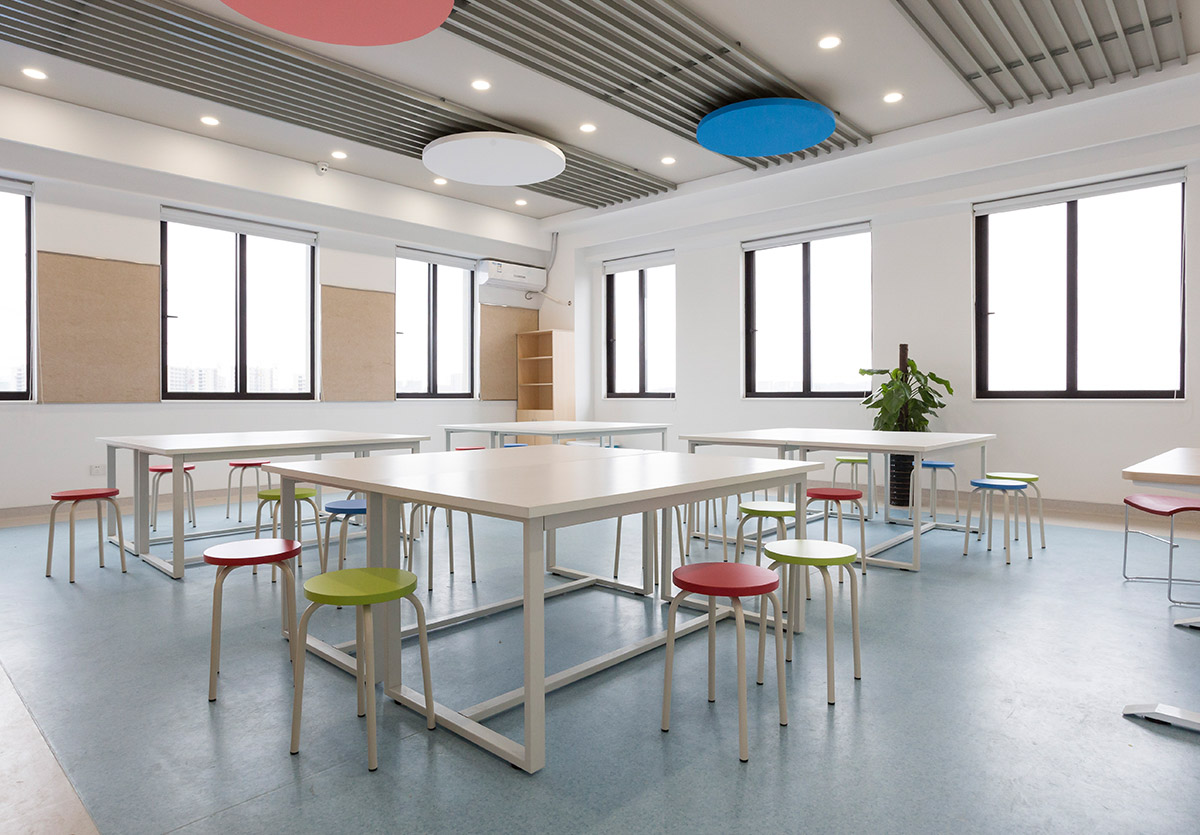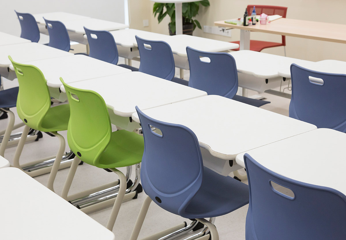 從空間上打破傳統的填鴨式刻板教學(xué),桌椅款式及擺放可以根據教學(xué)需求自由組合,建立一個(gè)多元化的學(xué)習空間。